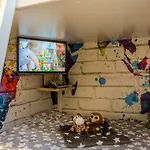Naast een persoonlijk kluisje en rookmelders voor extra veiligheid, is de accommodatie ingericht met een open haard, evenals een bank. Met een flatscreen TV met satellietzenders beschikbaar, kunnen gasten van het appartement optimaal genieten van hun vrije tijd. De badkamervoorzieningen omvatten zowel een bubbelbad, een apart toilet en een douche, als ook een haardroger en handdoeken.